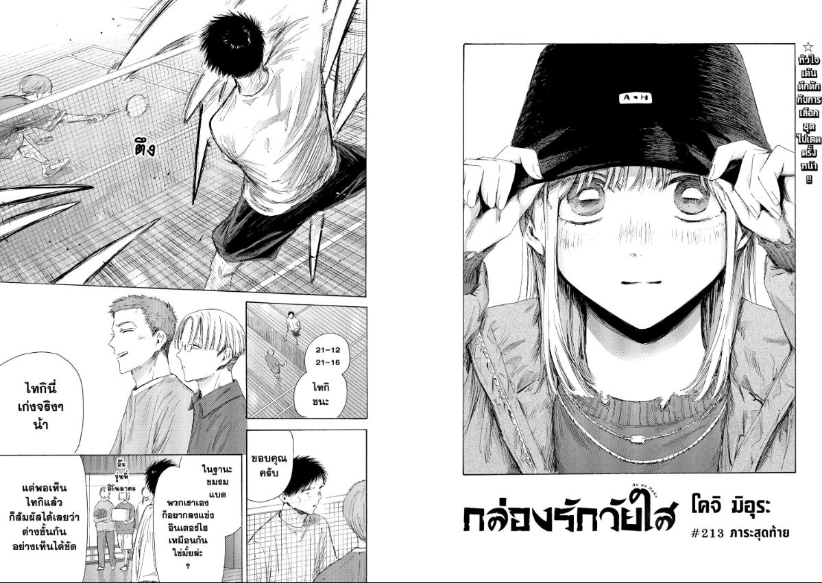 BLUE BOX ตอนที่ 213 : BLUE BOX กล่องรักวัยใส 213 : ภาระสุดท้าย Home›BLUE BOX อ่านมังงะตอนใหม่ล่าสุด BLUE BOX ตอนที่ 213 : BLUE BOX กล่องรักวัยใส 213 : ภาระสุดท้าย ตอนที่ 214 : BLUE BOX กล่องรักวัยใส 214 : พยายามเข้านะตอนที่ 213 : BLUE BOX กล่องรักวัยใส 213 : ภาระสุดท้ายตอนที่ 212 : BLUE BOX กล่องรักวัยใส 212 : ปัญหาของหลังจากนี้ตอนที่ 211 : BLUE BOX กล่องรักวัยใส 211 : ปีสุดท้ายตอนที่ 210 : BLUE BOX กล่องรักวัยใส 210 : ทุกสิ่งอัดแน่นตอนที่ 209 : BLUE BOX กล่องรักวัยใส 209 : สมบัติล้ำค่าของข้าพเจ้าตอนที่ 208 : BLUE BOX กล่องรักวัยใส 208 : กลายเป็นความทรงจำตอนที่ 207 : BLUE BOX กล่องรักวัยใส 207 : กลับมาแล้วเหรอตอนที่ 206 : BLUE BOX กล่องรักวัยใส 206 : ยังไม่มีตอนที่ 205 : BLUE BOX กล่องรักวัยใส 205 : ทำอะไรอยู่น่ะตอนที่ 204 : BLUE BOX กล่องรักวัยใส 204 : ความเป็นไปได้ตอนที่ 203 : BLUE BOX กล่องรักวัยใส 203 : ตัวต่อจิ๊กซอว์ตอนที่ 202 : BLUE BOX กล่องรักวัยใส 202 : ในแบบของฉันเองตอนที่ 201 : BLUE BOX กล่องรักวัยใส 201 : ให้ความสำคัญตอนที่ 200 : BLUE BOX กล่องรักวัยใส 200 : อยากใกล้ชิดตอนที่ 199 : BLUE BOX กล่องรักวัยใส 199 : เอาใจเขามาใส่ใจเราตอนที่ 198 : BLUE BOX กล่องรักวัยใส 198 : ถ้าไม่รุกตอนที่ 197 : BLUE BOX กล่องรักวัยใส 197 : ค่อยเป็นค่อยไปตอนที่ 196 : BLUE BOX กล่องรักวัยใส 196 : รักตอนที่ 195 : BLUE BOX กล่องรักวัยใส 195 : มาอยู่นี่สิBLUE BOX กล่องรักวัยใส ตอนที่ 194 : ตรงหน้าความสุขBLUE BOX กล่องรักวัยใส ตอนที่ 193 : ปีใหม่BLUE BOX กล่องรักวัยใส ตอนที่ 192 : ขอบคุณที่ดูแลมาตลอดBLUE BOX กล่องรักวัยใส ตอนที่ 191 : ถึงตานายแล้วBLUE BOX กล่องรักวัยใส ตอนที่ 190 : สิ่งที่เรียกว่าโชคชะตาBLUE BOX กล่องรักวัยใส ตอนที่ 189 : รบกวนด้วยค่ะBLUE BOX กล่องรักวัยใส ตอนที่ 188 : เวลาเหงาBLUE BOX กล่องรักวัยใส ตอนที่ 187 : อยู่ข้างๆด้วยนะBLUE BOX กล่องรักวัยใส ตอนที่ 186 : ถ้าไม่เหงาก็คงดีBLUE BOX กล่องรักวัยใส ตอนที่ 185 : ก็แย่น่ะสิBLUE BOX กล่องรักวัยใส ตอนที่ 184 : ผู้ใหญ่ให้การยอมรับBLUE BOX กล่องรักวัยใส ตอนที่ 183 : เล่นบาสกันBLUE BOX กล่องรักวัยใส ตอนที่ 182 : สนุกจนน้ำตาแทบไหลBLUE BOX กล่องรักวัยใส ตอนที่ 181 : จะไม่พลาดอีกBLUE BOX กล่องรักวัยใส ตอนที่ 180 : จะตอบแทนBLUE BOX กล่องรักวัยใส ตอนที่ 179 : ภาพลวงตาBLUE BOX กล่องรักวัยใส ตอนที่ 178 : ขอบคุณนะBLUE BOX กล่องรักวัยใส ตอนที่ 177 : ขาดไม่ได้BLUE BOX กล่องรักวัยใส ตอนที่ 176 : อยากเป็นแฟนBLUE BOX กล่องรักวัยใส ตอนที่ 175 : เพราะเป็นเด็กBLUE BOX กล่องรักวัยใส ตอนที่ 174 : แค่บาสเกตบอลBLUE BOX กล่องรักวัยใส ตอนที่ 173 : ให้ผมถือBLUE BOX กล่องรักวัยใส ตอนที่ 172 : “ตอนนี้” ที่อยู๋ตรงหน้าBLUE BOX กล่องรักวัยใส ตอนที่ 171 : ยอมแพ้แล้วเหรอ?BLUE BOX กล่องรักวัยใส ตอนที่ 170 : 1 ปีนับจากนั้นBLUE BOX กล่องรักวัยใส ตอนที่ 169 : แสตมป์BLUE BOX กล่องรักวัยใส ตอนที่ 168 : นี่แหละตัวเราBLUE BOX กล่องรักวัยใส ตอนที่ 167 : ถ้ายังทันBLUE BOX กล่องรักวัยใส ตอนที่ 166 : ความรู้สึกนี้คือBLUE BOX กล่องรักวัยใส ตอนที